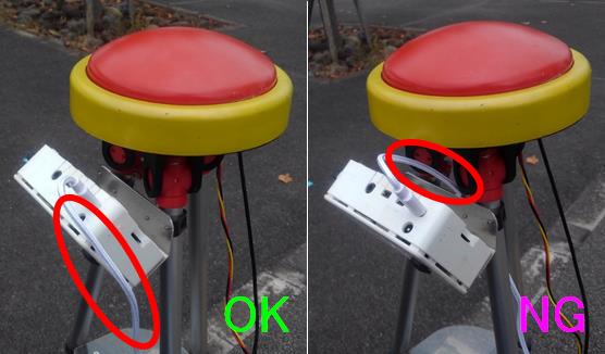 アンテナの近くに電源配線があるとGNSS測位に干渉することが確認されました。