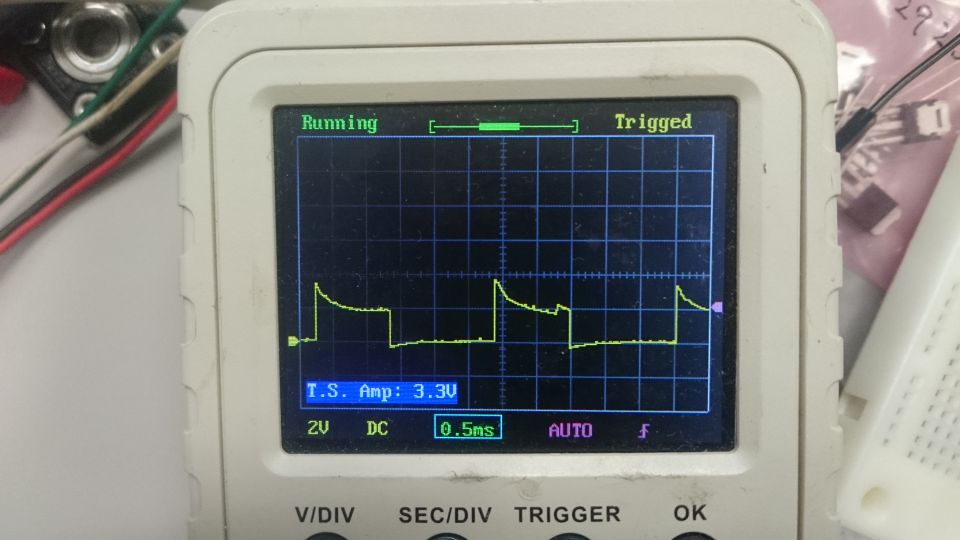 波形を見る限り、電圧を供給していない時も回生の影響で1V以上電圧が出ています。