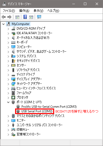 ちなみに、BCSH7125のCOMポートをシリアル通信ソフトで開いておけばリセットされません。