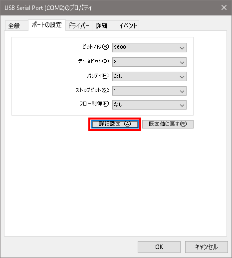 ポートの設定タブの詳細設定