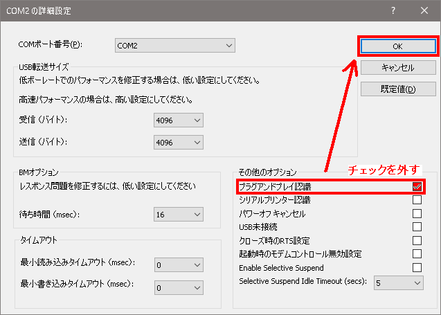 この症状の現況である、プラグアンドプレイ認識を解除してOK