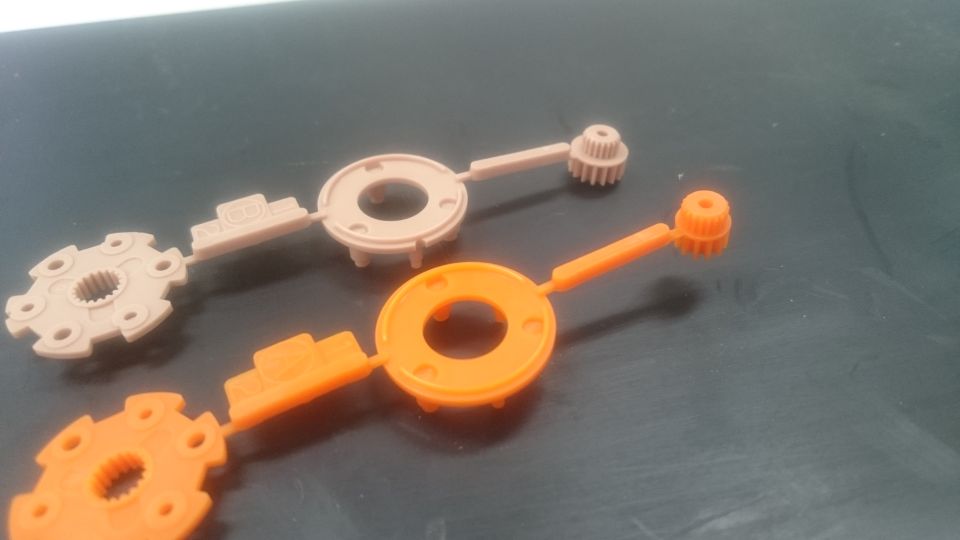 2.ギヤの干渉素の状態だとガタが大きく左側の緑のギヤとオレンジのギヤが干渉を起こします。
