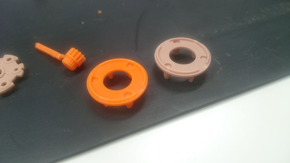 ギヤの接触を防ぐためにオレンジのギヤの間に平ワッシャーを一枚入れてます。