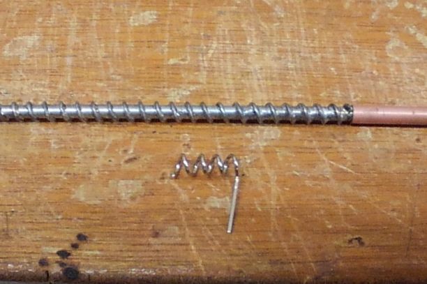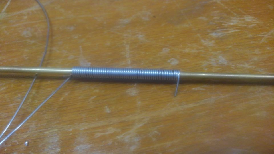 真鍮パイプにスズメッキ線を巻いていきます。