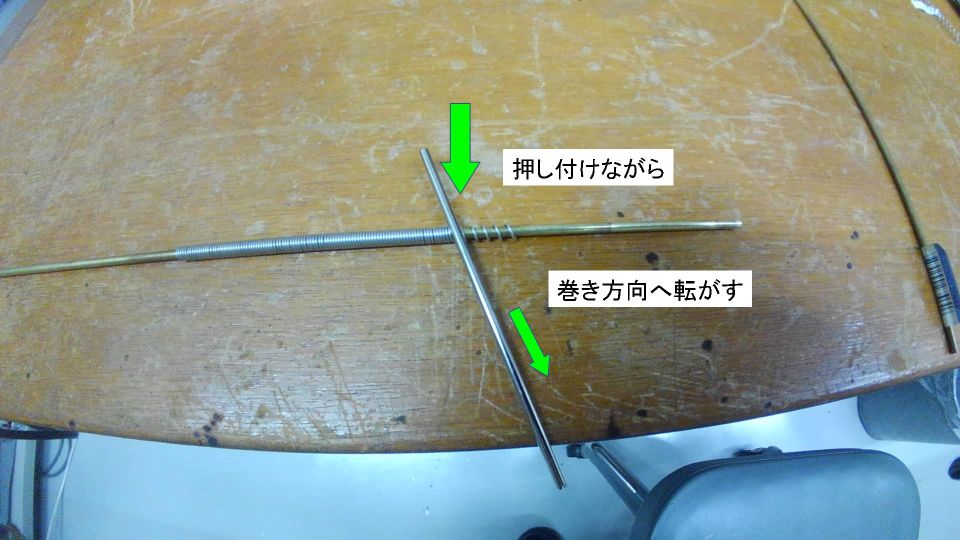 案外うまくいった一旦密に巻いておき、丸棒を押し当てながらコロコロするだけで綺麗にピッチが揃います。