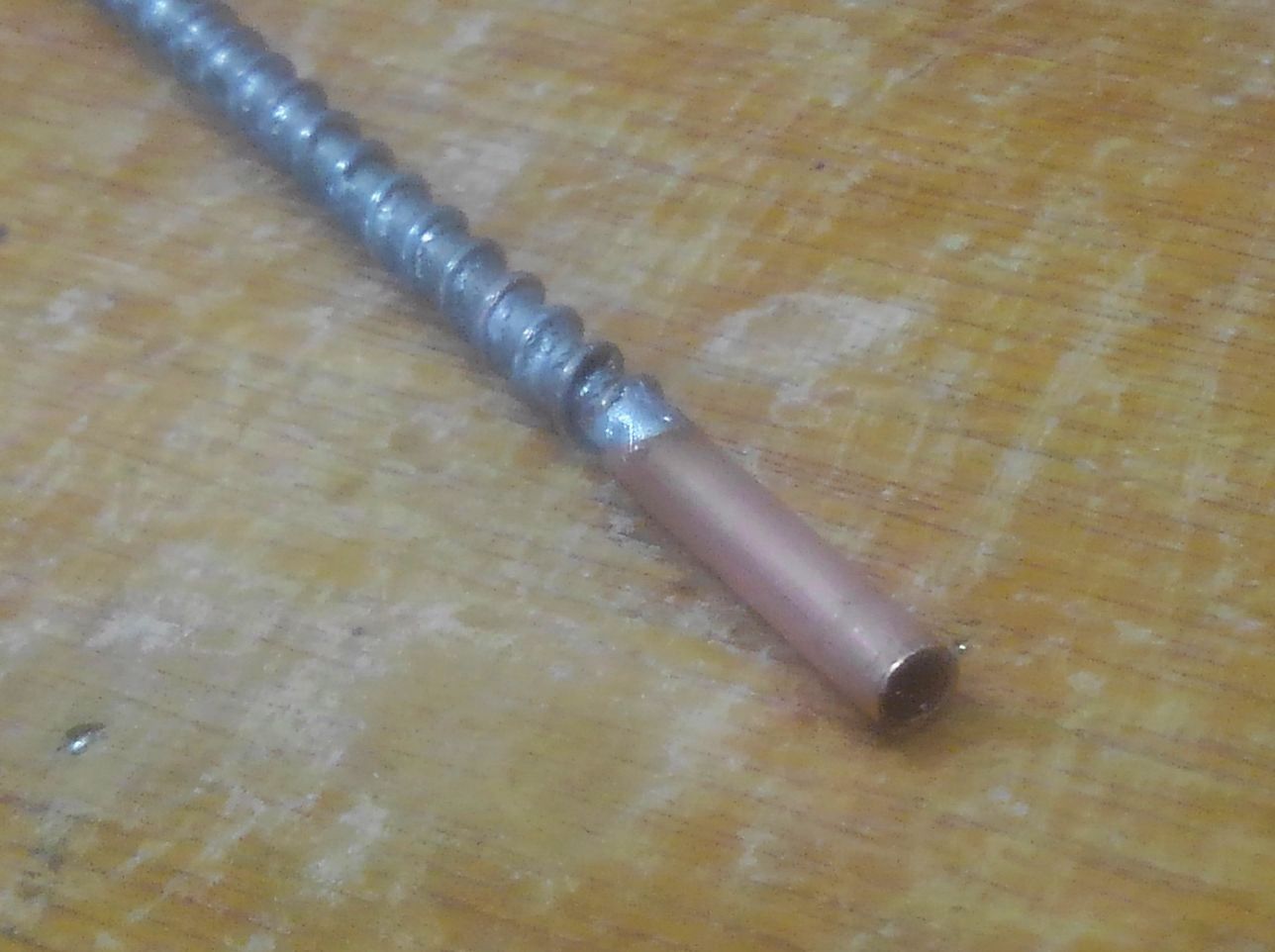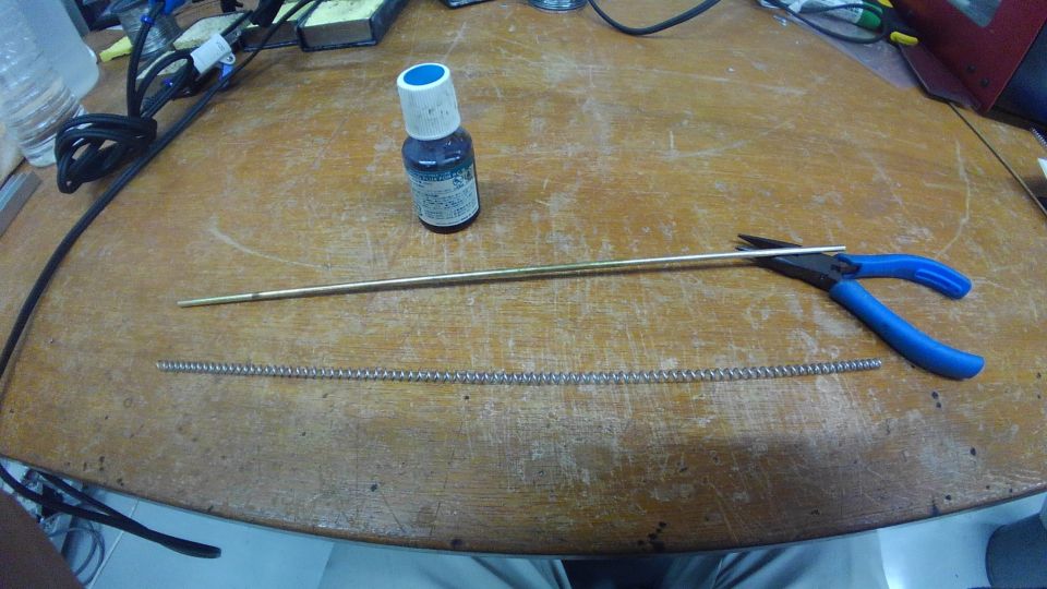旋盤等は使わず、真鍮パイプにスズメッキ線を巻いて半田付けしています。
