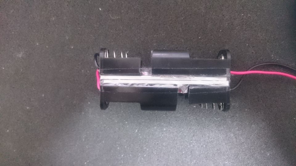 結局電池ケースを途中で切断し、アルミ板にセメダイン スーパーX張り付けて延長しました。また、ケース内のプラス側にある出っ張りが邪魔になるので切り落としました。