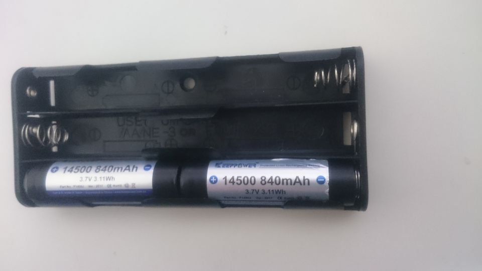 KeepPower16340もCR123Aより電極間距離で3mmぐらい長いのですが、秋月で扱っているCR123A用電池ケース(と同等品)の電池バネを一度外して追加工することで入るようになりました。プラス側端子が電池ケースと擦れすので少し拡張するとなお良さそうです。
