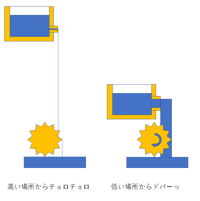 ではコップに水を灌ぐ場合を考えてみます。