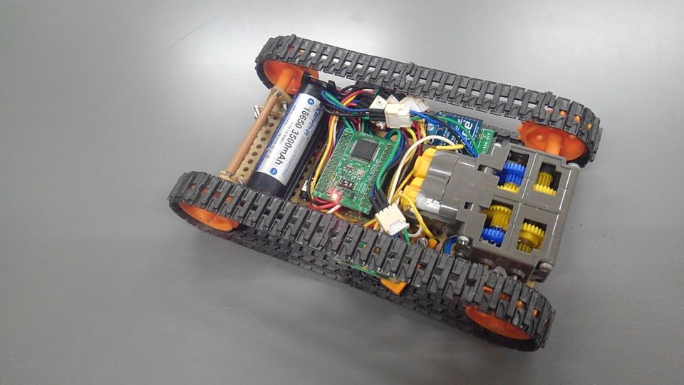 倒立クローラーのミニ四駆版。小型化に伴う苦労が多かった。