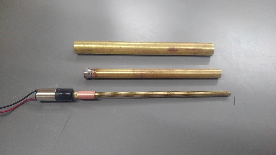 レゴ製のリニアアクチュエータ(リードスクリュー)とギヤドモーターを連結。