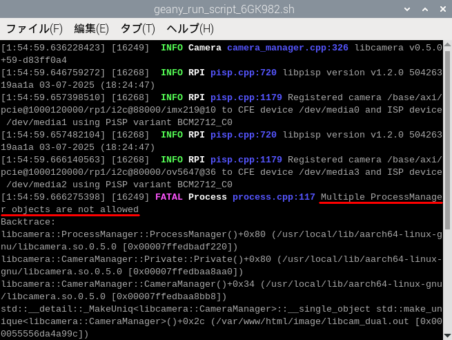 LibCamera cam0 LibCamera cam1でそれぞれ使うことになるのでエラーになってしまいます。