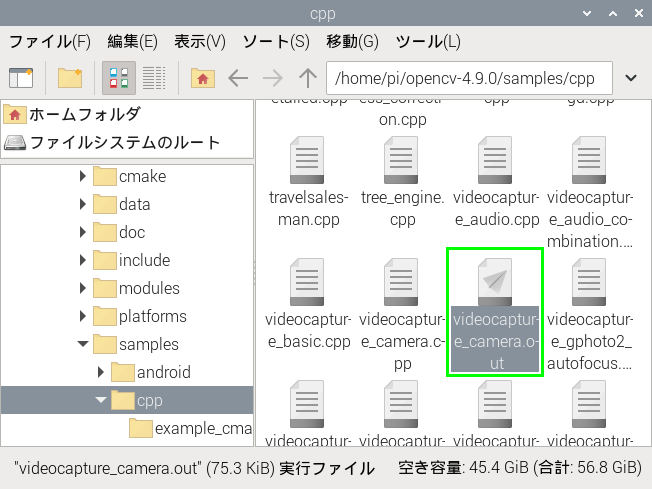 これを使ってOpenCVのサンプルプログラムを実行してみます。