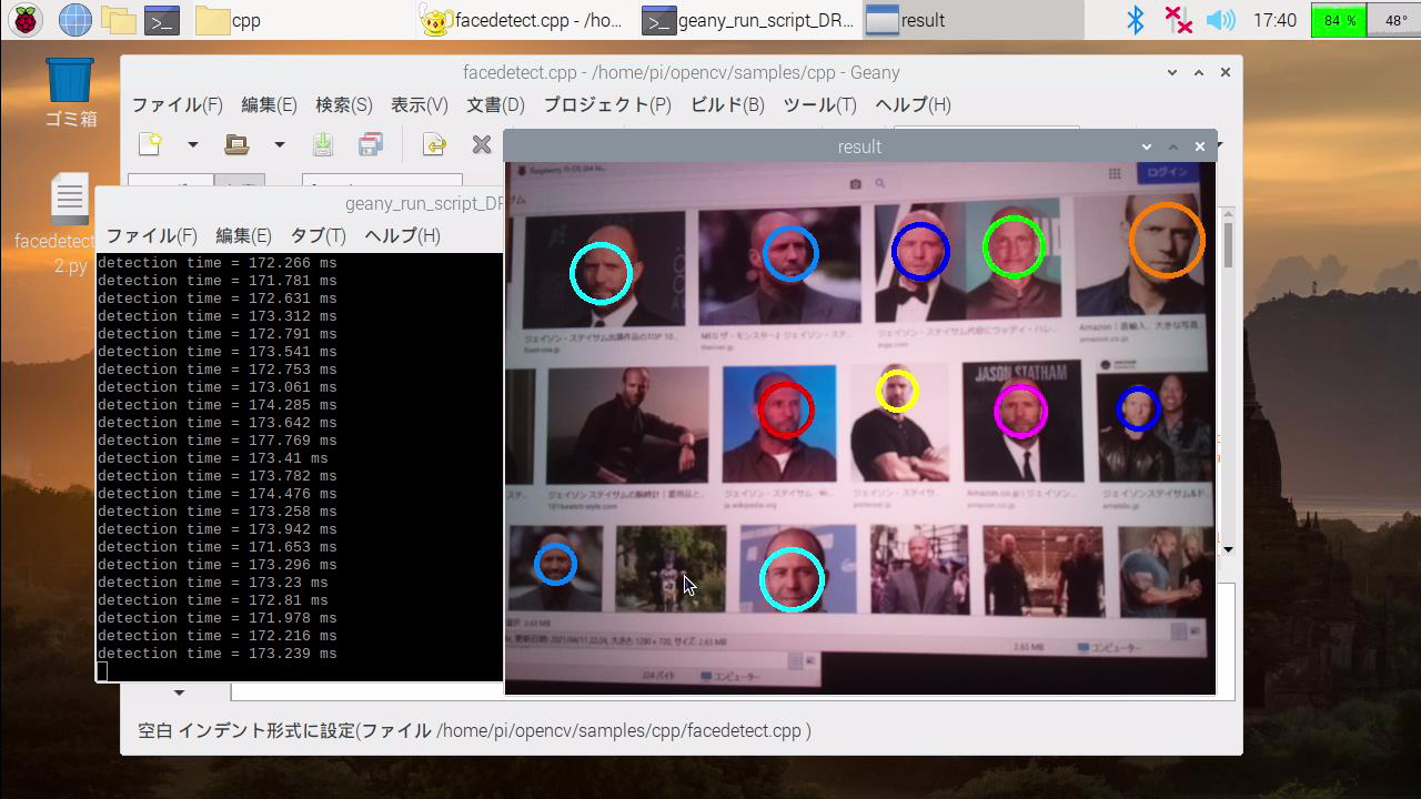 scale=2では小さな顔を検出できないので条件に合わせて調整して下さい。