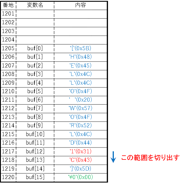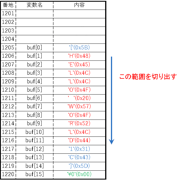 buf[1]の番地扱いになります。