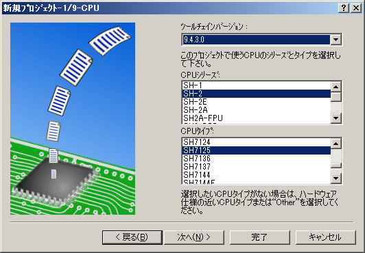 インストールしたHEWのバージョンで多少違います。CPUシリーズ:SH-2