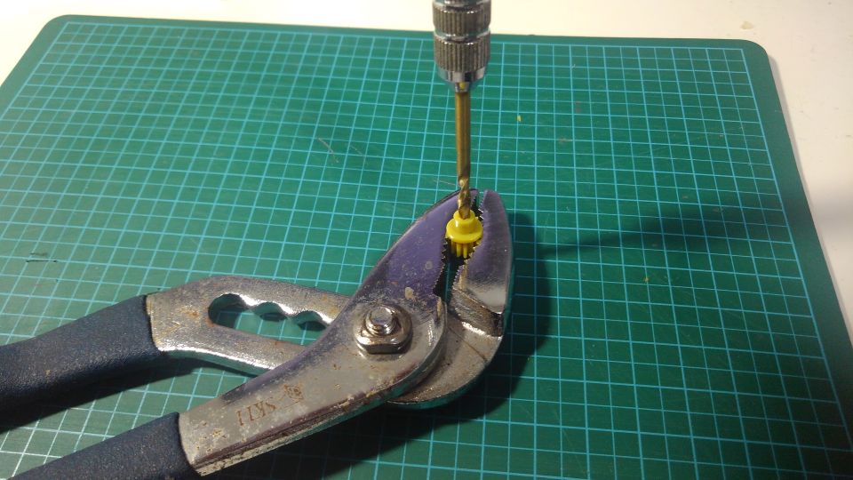 電動工具を使うと危険なので、ピンバイス等を推奨。