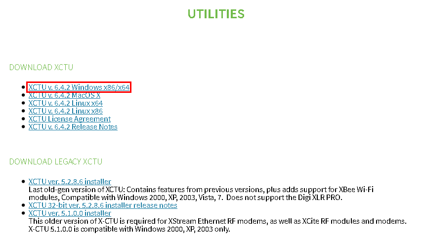 XCTU v.6.4.2 Windows x86/x64をクリックしてダウンロード(123Mbyte)