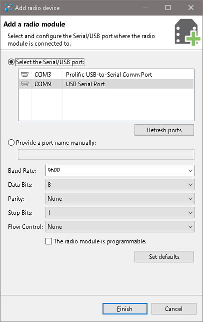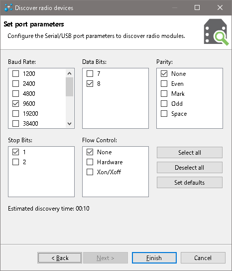 工場出荷状態のモジュールだと 9600,8,None,1,None にて通信できます。