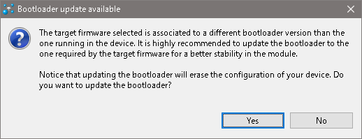 モジュール内でより安定するために、選択されたファームウェアに必要なブートローダーの更新が推奨されます。