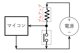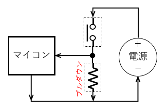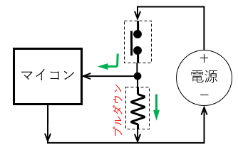 スイッチが押されていない状態で常にマイコン端子に電圧が加わり