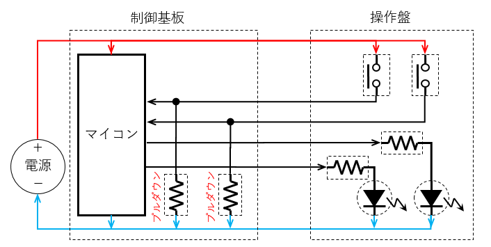 プルダウンといった配線を行います。