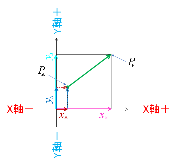 始点座標PAを指定して、始点からの各軸方向の