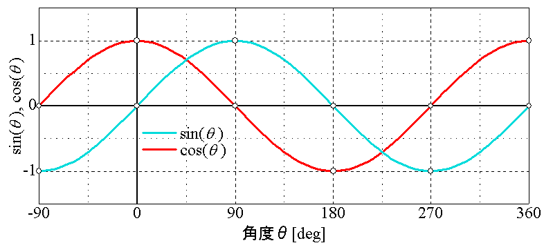 θ=360°でまた0に戻ります。