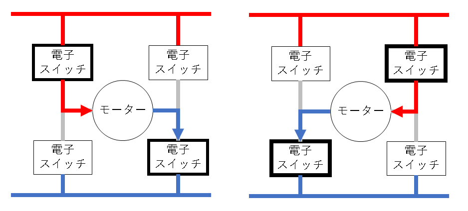 これでモーターの正転逆転および速度制御ができるようになりました。