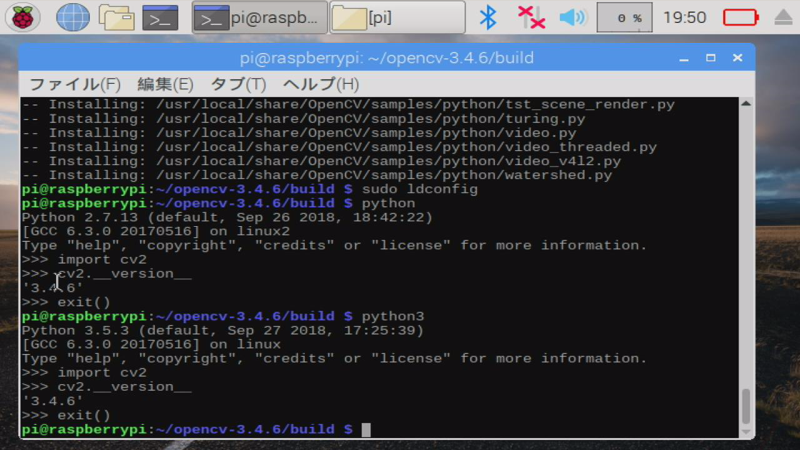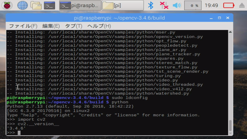 ラズパイ3にOpenCV3/4を簡単に導入参考:からあげ様