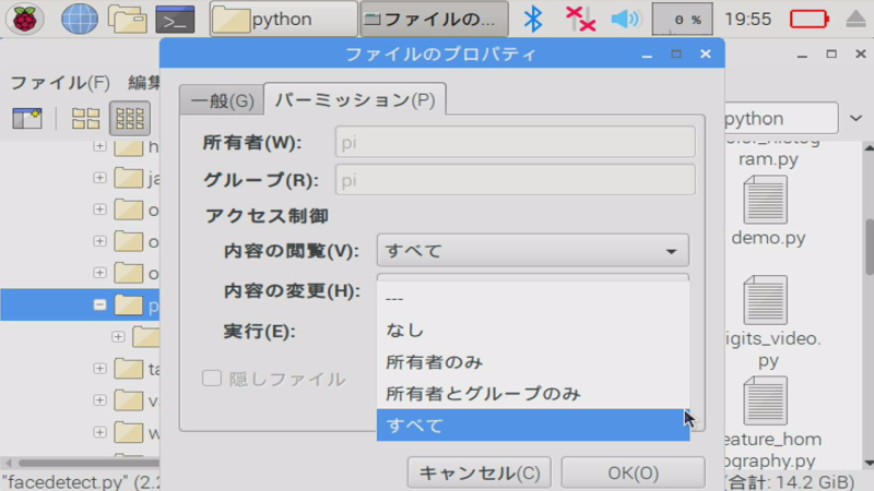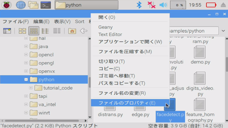 実行したいプログラム(facedetect.py)のプロパティーを開いて