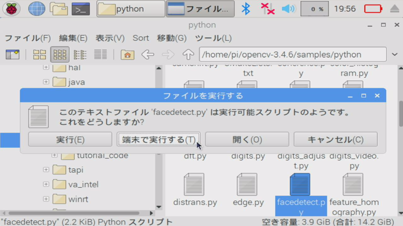 サンプルプログラムは/home/pi/opencv/samples/pythonの中にあります。