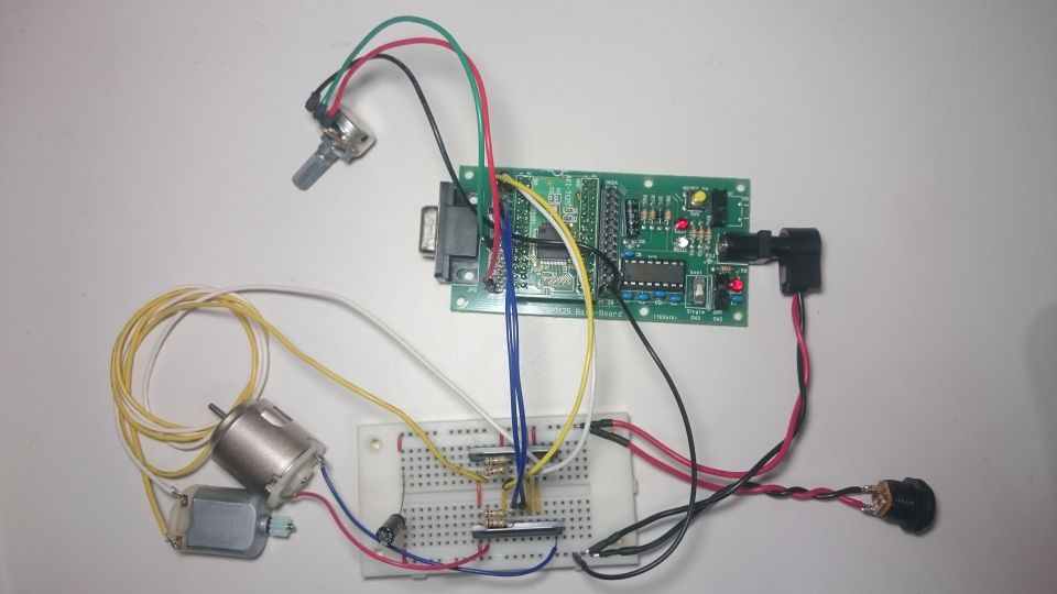 これでモーターの正転逆転および速度制御ができるようになりました。