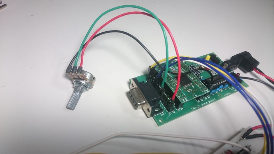 可変抵抗は抵抗中央の信号線をPF0へ、GNDと電源をそれぞれマイコンボードのGNDと5Vへ接続します。